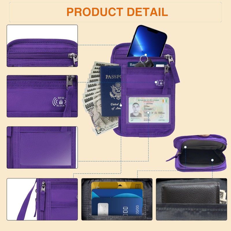 RFID Blocking Neck Wallet Small Crossbody Bag Travel Passport Holder Slim Minimalist Design Security Neck Pouch