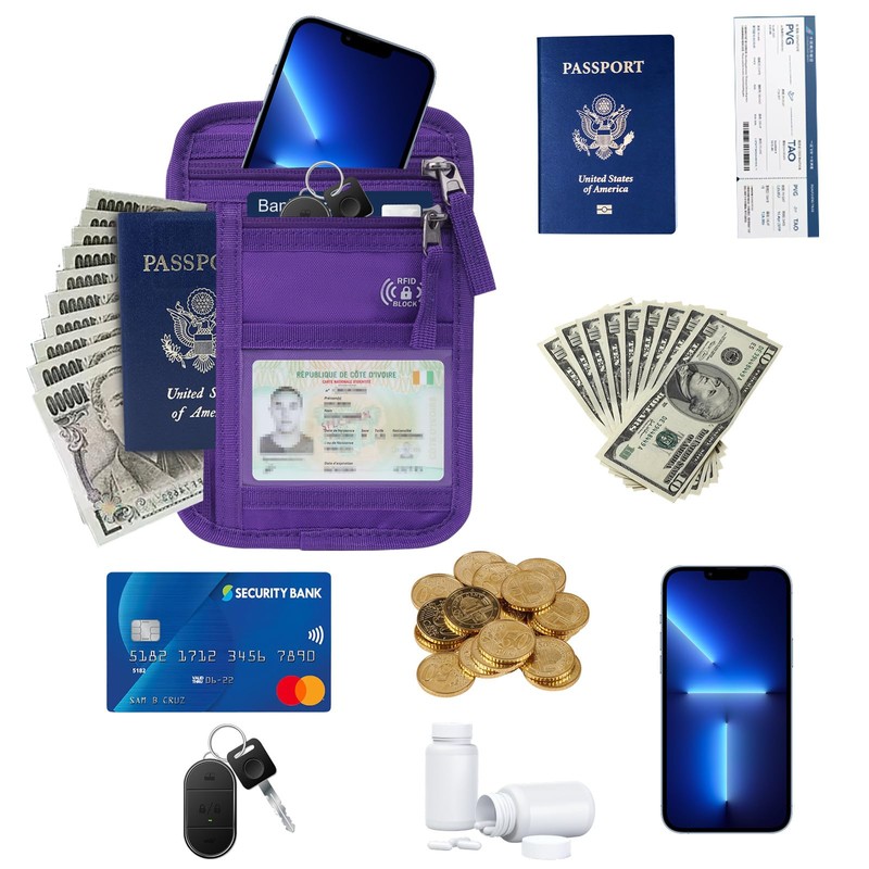- [RFID Blocking Passport Wallet]- Water-resistant passport holder, perfect for concealing beneath clothing. Advanced RFID barrier safeguards passports, credit cards, and money against theft. Ideal for travel neck wallet, travel pouch, and passport holder.