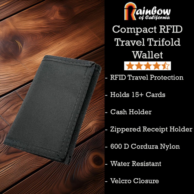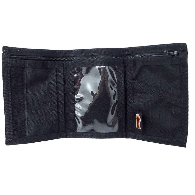 RFID Nylon Trifold Hook and Loop Wallet. w/Inside ID Window. Made in USA (Black)