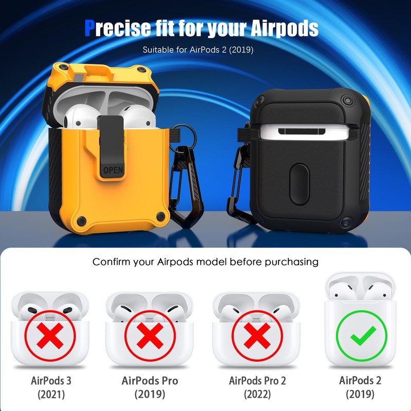 • 【Unique Security Lock & Automatic Pop-up】 Upgraded security lock design makes it easier to open and close.Press the "OPEN" button, the top of the case will automatically pop open. Keeps the AirPods charging case well closed and ensures that the cover never falls off.
