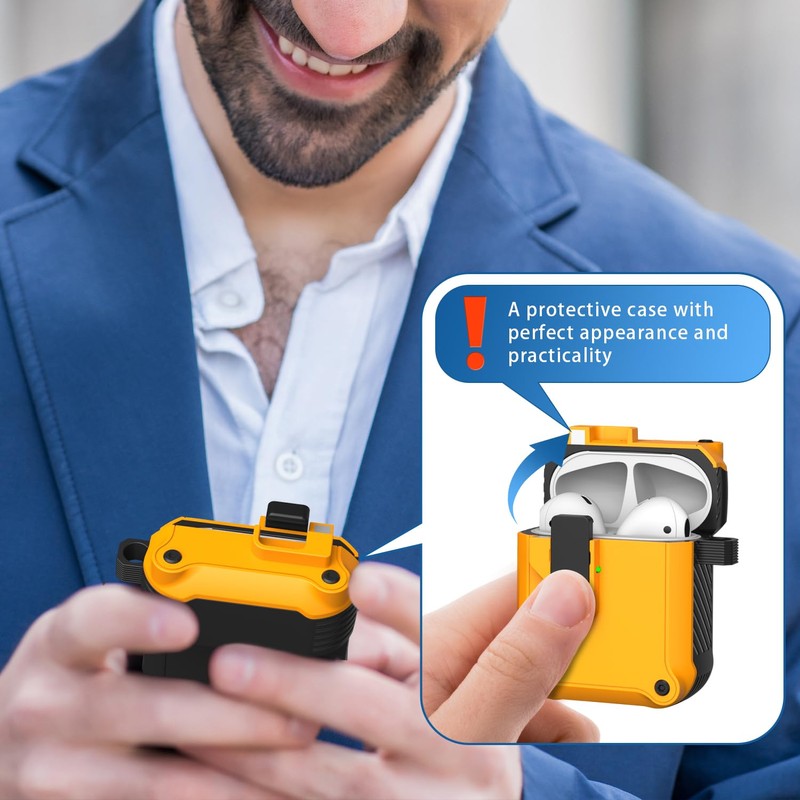 RFUNGUANGO for Airpods 2nd and 1st Generation Protective Cases Automatic Pop-up with Safety Lock Clip, Full Body Shockproof Hard Case with Keychain (Cleaning Tool) -Yellow