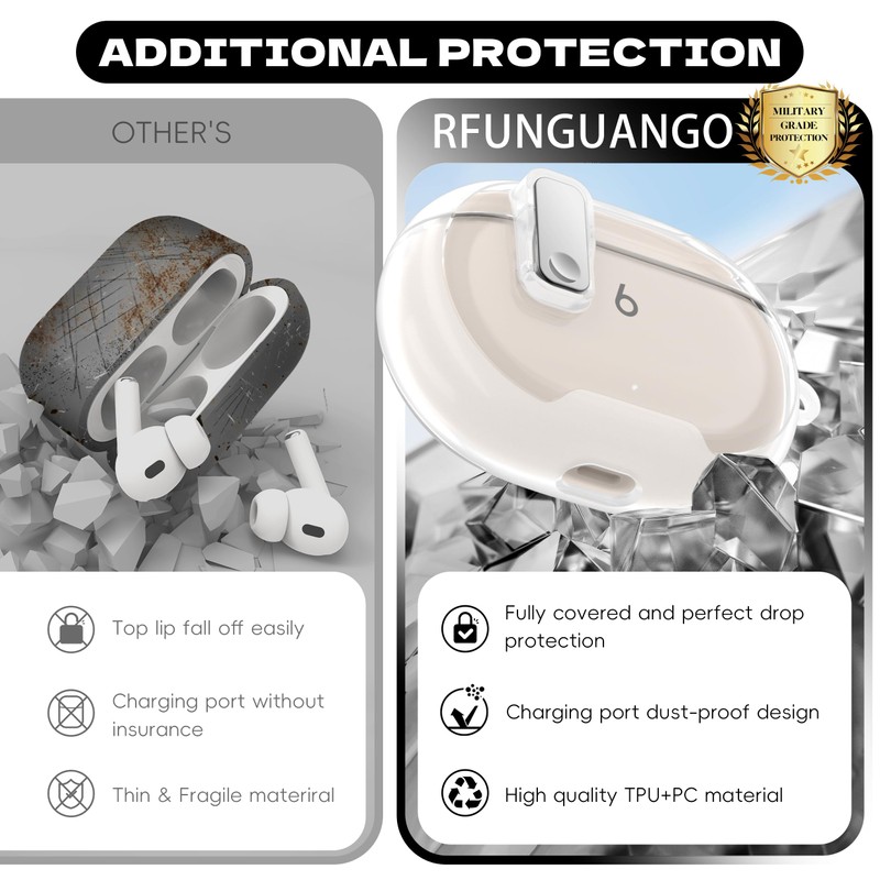 - 【Security Lock】This Transparent protective cover with safety lock design prevents the top cover from accidentally falling off. Securely locks the Beats Studio Buds even if dropped. Protect your Earbuds every moment.