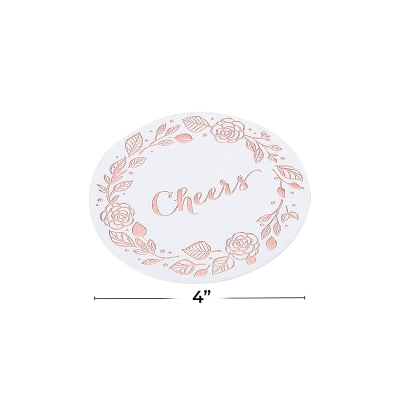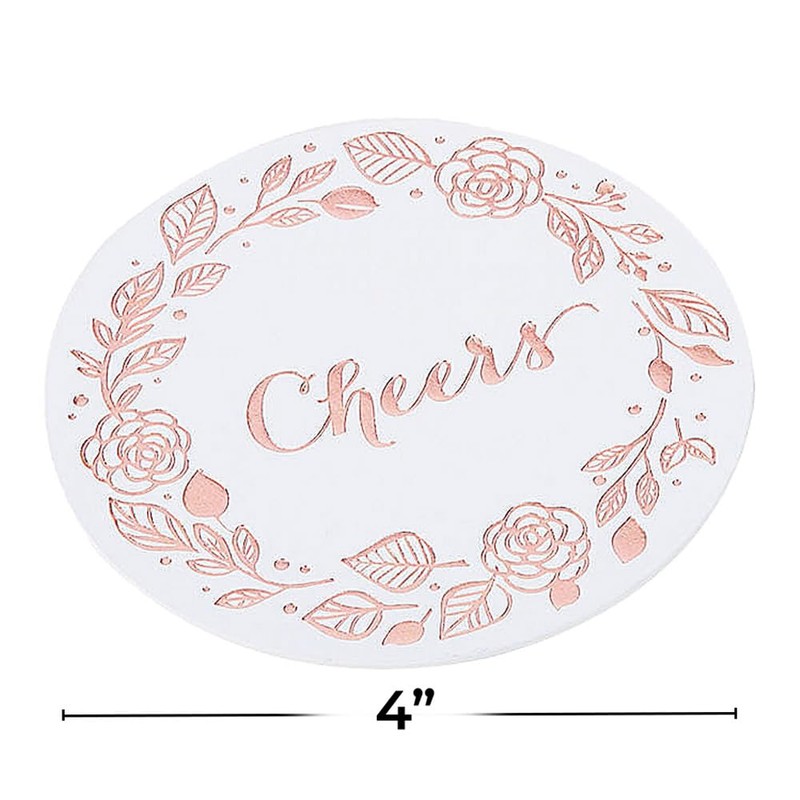 • EYE-CATCHING FLORAL DESIGN: Our Elegant Cheers White & Rose Gold Foil Coasters feature an attractive foil floral border and the word "Cheers!" - making any event feel extra special and inviting