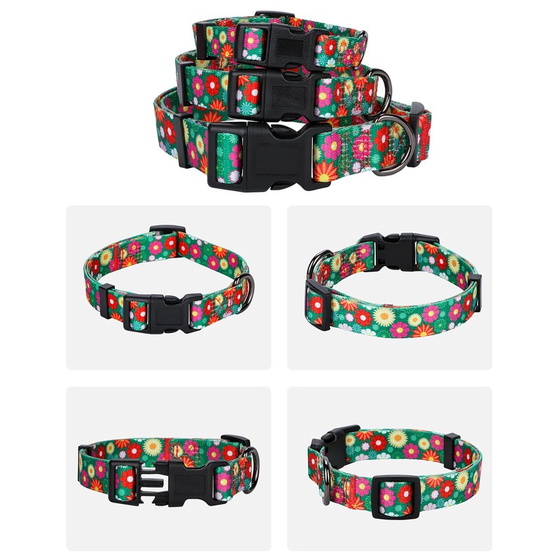 • Green Daisy Dog Collar: our cute flower dog collars are made of high density polyester. That's very durable , impossible to tear. Zinc Alloy D-ring to add durability and will not rust.