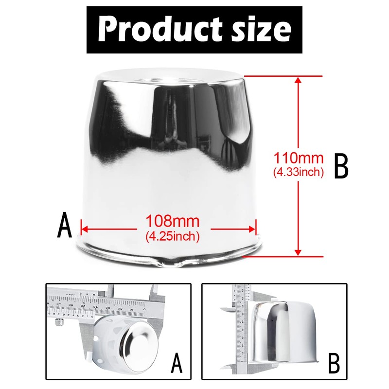 - ★Size: 4.25inch diameter, 4.33inch Tall, total measurement across the back of the flange is 4.45inch. Please use a digital caliper to check the center bore size if you are not sure. For the models with the diameter of the wheel center hub cover parameters errors are within 0.5mm for the success of fitment.