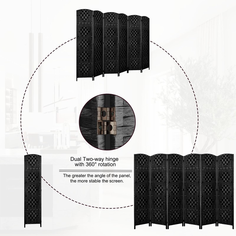 - Two-way Hinges: Woven frame folding panels with 360° directional two-way hinges, this weave fiber privacy room divider is easy to adjust or fold away for storage when not in use and multiple panels can be stacked for easy storage and transportation.