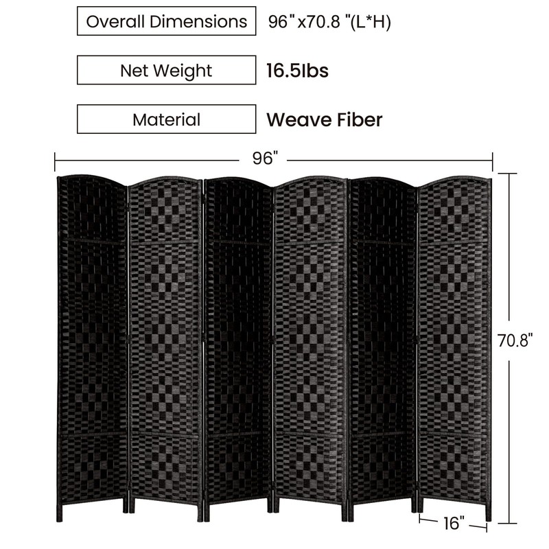 - Privacy Screen: The Portable room divider is 6 ft. tall by 16" wide on each panel. Our screen fully considers ergonomics, and its width and height are in line with market requirements, providing you with more privacy, and it allows you to create a private space to avoid embarrassment in life.