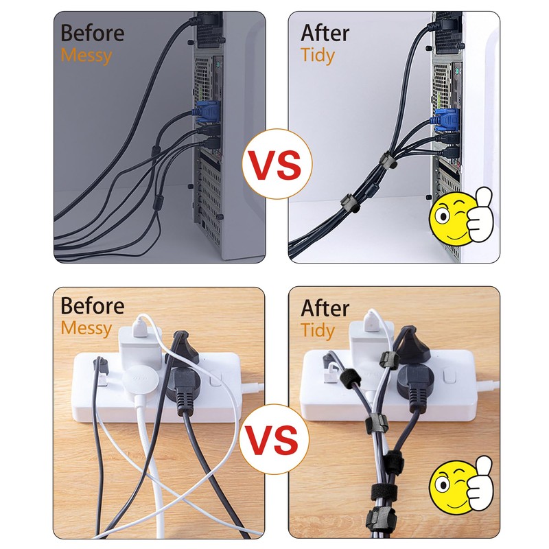- Wide applications: the Velcro cable ties are perfect for fixing cables, curtains, sports equipment, plants and tools. For PC, laptop, TV, etc., tablets, headphones, or mobile devices. It can be used in your office, data centre, home or workplace. Say goodbye to a messy environment and no tangled cables.