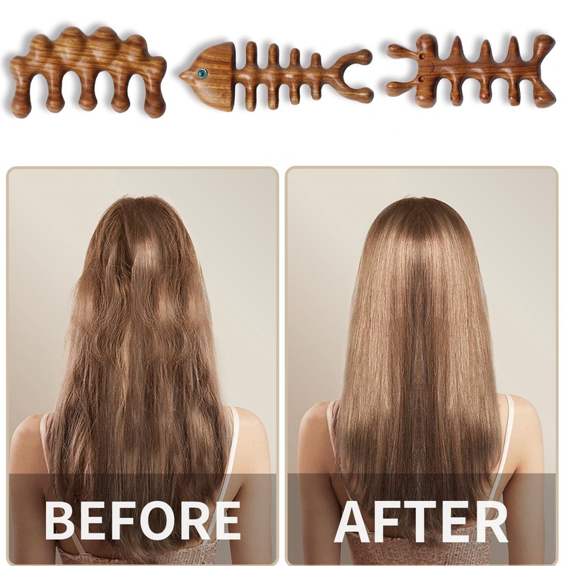 - [Antistatic Massager] There are always a few hair stand up when use average comb during dry and windy weather. But this wood comb doesn't have this trouble, special teeth glide through smoothly and don't tend to pull or break your hair.