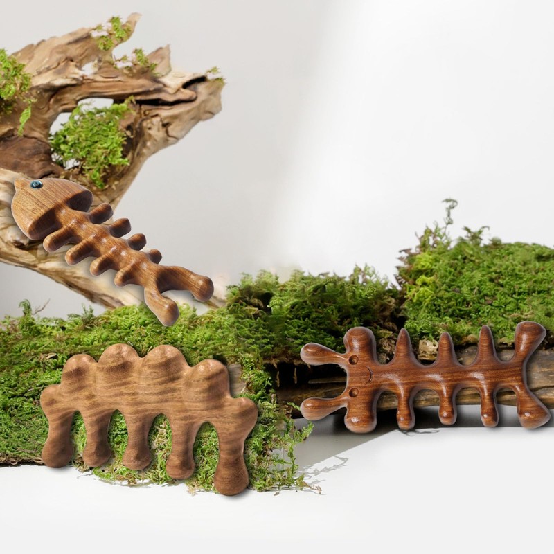 Rhinenet 3PCS Scalp Massager Natural Green Sandalwood Wood Massage Comb Wide Tooth Handmade No Static Head Massage Cute Animal Shapes Comb for Women Men Hair Neck Hands Legs Caring Tool (Insect-3)