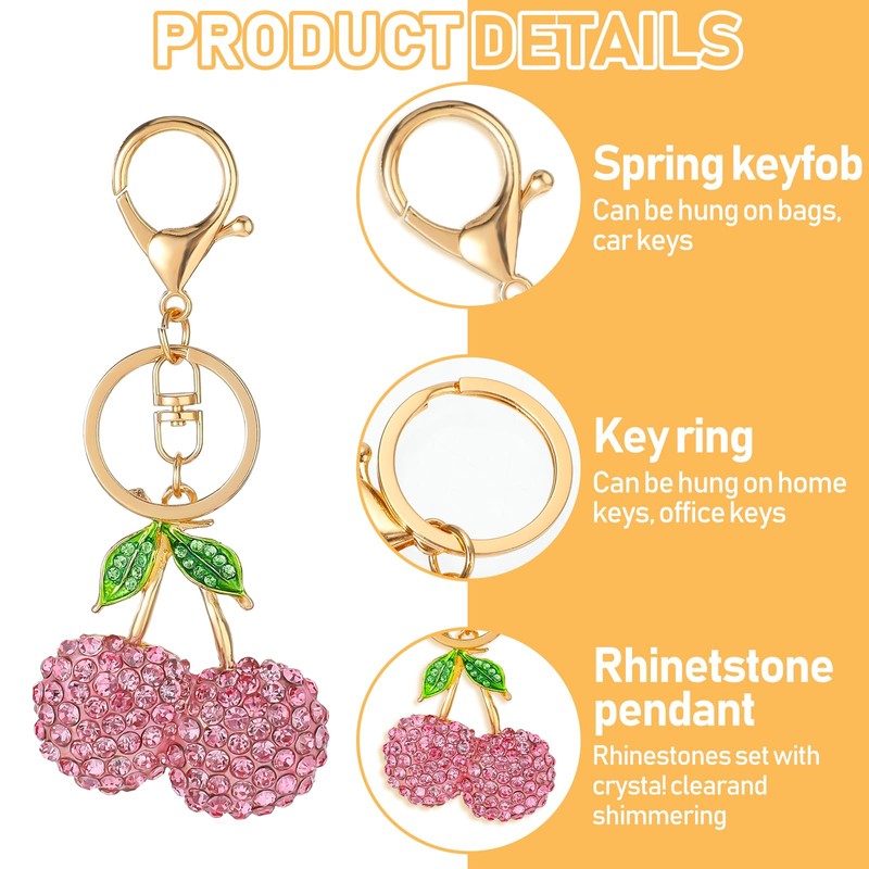 - 【Reliable Material】Our cherry keychain is made of quality alloy with pink sparkling crystal rhinestones, durable and wear-resistant.