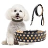 Rhinestone Dog Collar, Bling Diamond Pet Collars with Leash Adjustable, Dazzling Sparkly Crystal Studded Microfiber Leather Spiked Puppy Collar Cute for Small and Medium Large Girl Dogs Cats