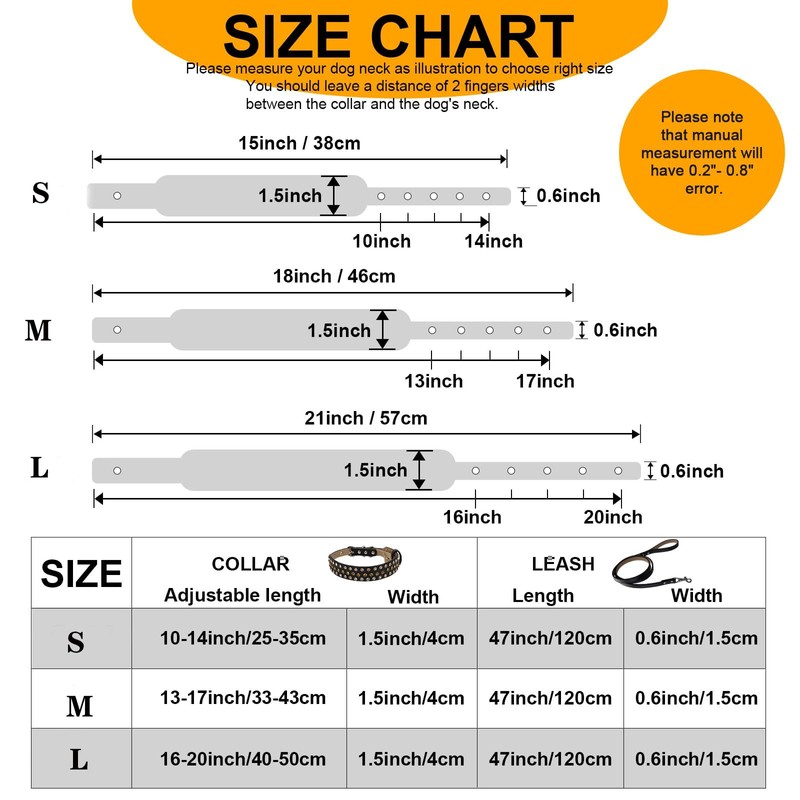 - Design Dog Collar : The locking buckle and D ring.Each dog collar has 5 holes,each hole reinforced by zinc alloy metal with to prevent the leather ring slippage to add a fixed rope;Dog collar and leash are made of oil edge wrapping treatment,stylish and strong,but soft at the same time.The pursuit of details only for higher quality!