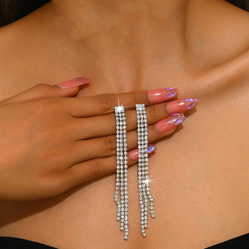- Rhinestone Tassel Dangling Earrings:These rhinestone long tassel earrings are designed in rhinestone,There are several colors to choose from, so you can match your clothes freely,I believe you will love it