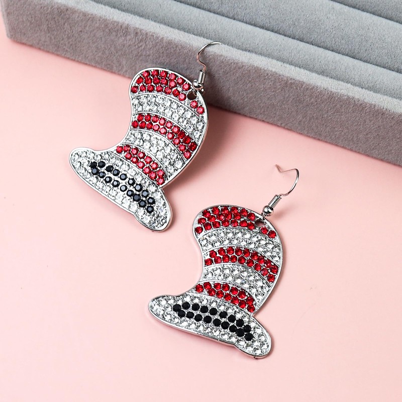 Rhinestones Dr. Seuss Day Dangle Earrings Shiny Crystal Red Hat Earrings Graduation Back to School Gift for Teacher Student Librarian(Red Hat)