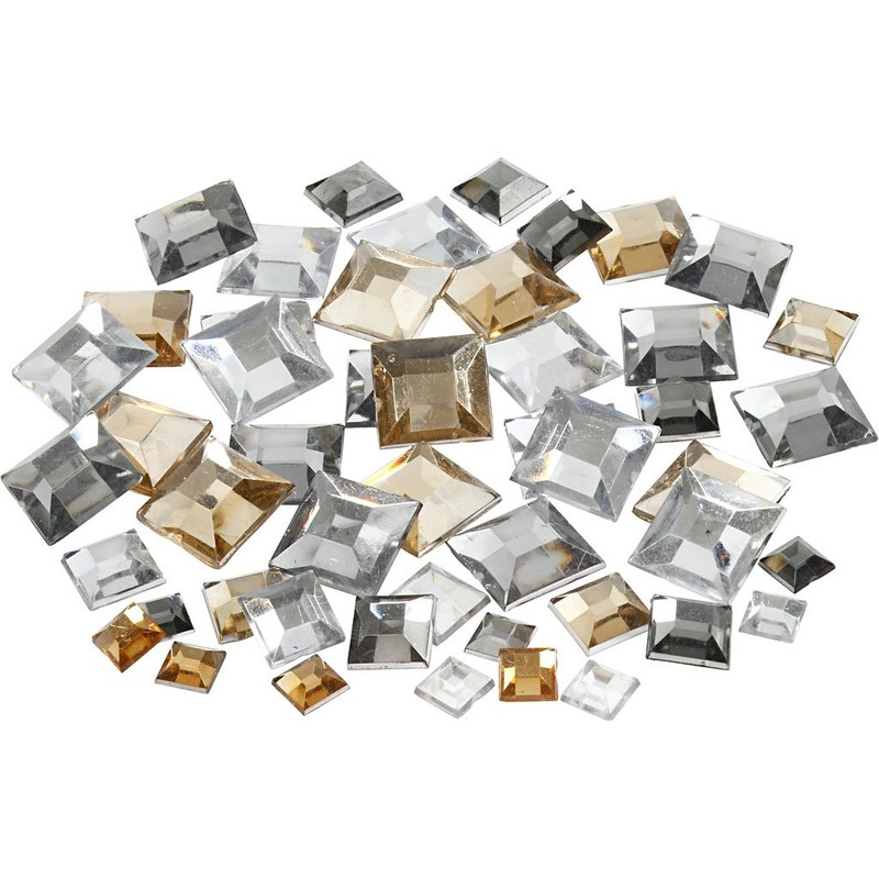 Rhinestones, Size 6 + 9 + 12 mm, Silver Tones, Square, 360 Assorted