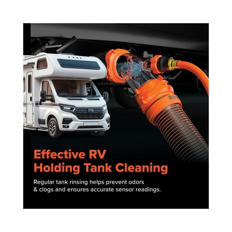 - COMPLETE KIT: 25-foot RV sewer hose kit includes a clear adapter and standard thread compatibility for hassle-free waste management. Effortless Tank Cleaning: Keep your RV black tank, camper sewer hose, and tote tank clean with the Rhino Blaster RV Waste Tank. This tool ensures accurate sensor readings and prevents odors and clogs, making this RV accessory a top camper must have!