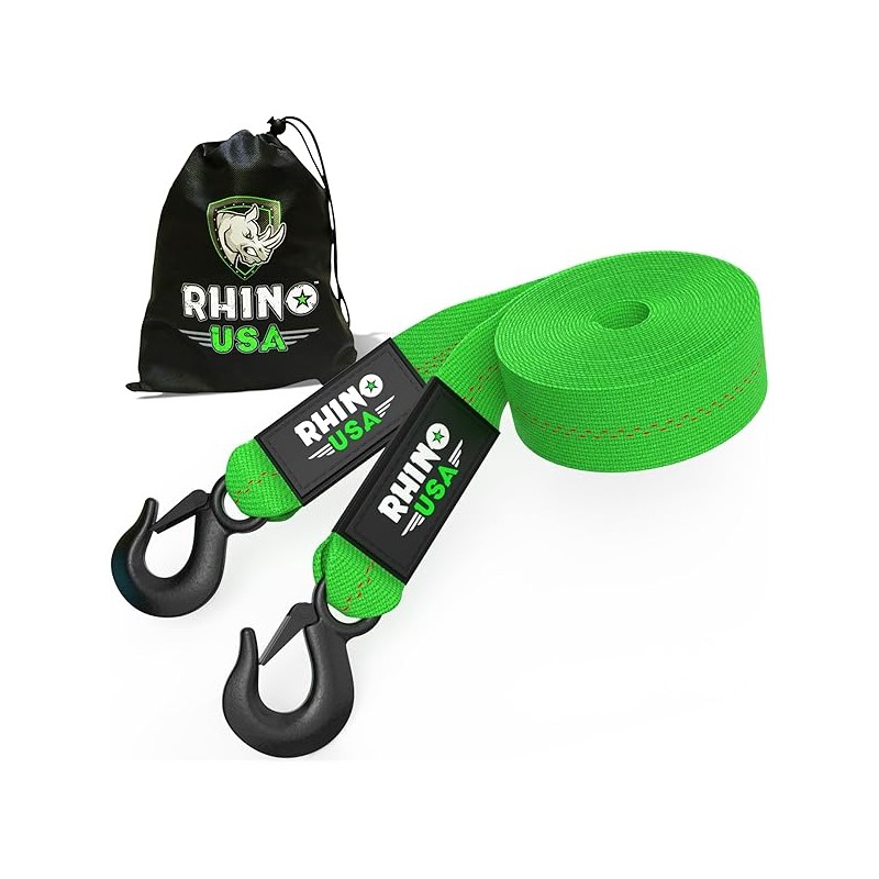 Rhino USA Tow Strap with Hooks (2 Inch x 20 Foot) Lab Inspected 10,321lbs Break Strength - Heavy Duty Emergency Towing Straps with Forged Steel Hooks for Roadside Recovery - Not for OffRoad Recoveries