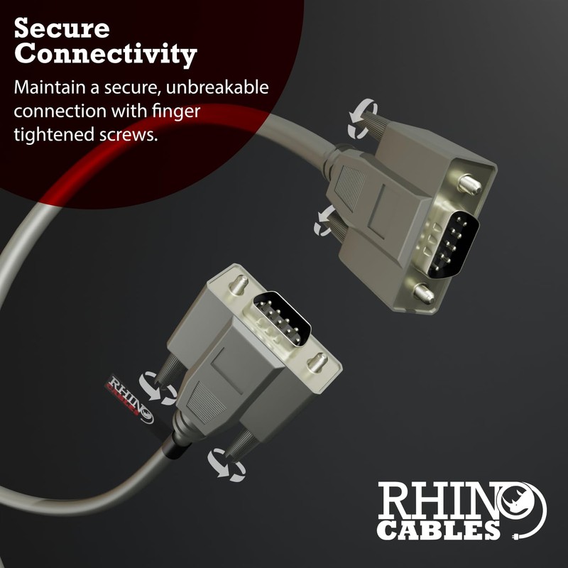 rhinocables Serial 9 Pin Male to Male Cable DB9 to DB9 RS-232 Computer Monitor Straight Lead, Versatile EGA and Serial Connectivity for Older Computers (5m)