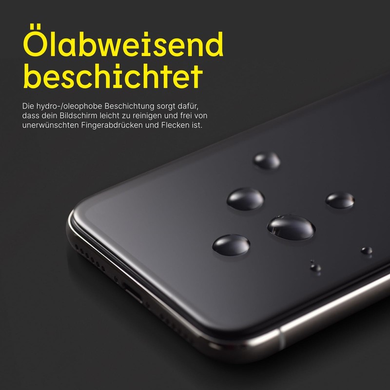 - ✔️ Water and oil-repellent – say goodbye to fingerprints, grease, dirt and stains caused by moisture. This screen protector is reinforced with a hydrophobic oleophobic coating that repels water and oil residues. The screen protector can be easily cleaned with a microfibre cloth.