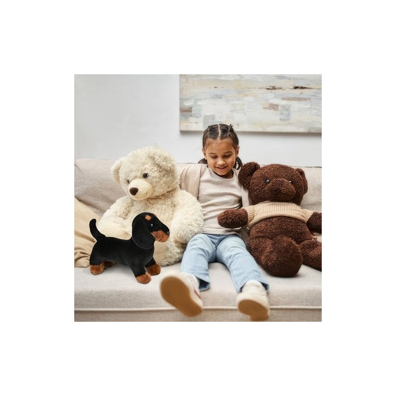 - 12" Heirloom Standing Dachsund Plush dog Buttery soft Stands up on its own Hard plastic eyes Ideal gift for dog lovers Perfect for pet fundraisers Great game prize Sold by the piece Ages 3+