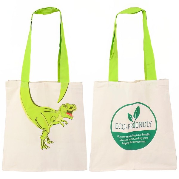 - 16" Dino Tail Eco-Friendly Canvas Bag Each piece with hang tag Great for beaches and daytrips Tote handles for easy carry 1 piece per order/unit Ages 3+