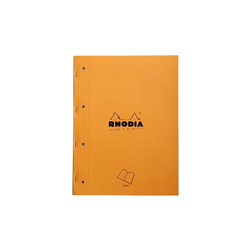RHODIA 118014C - Orange Side Stapled Notepad - A4 - Lined - 80 Detachable Sheets Perf. 4 Holes - 80G White Clairefontaine Paper - Soft and Resistant Coated Card Cover - Basics