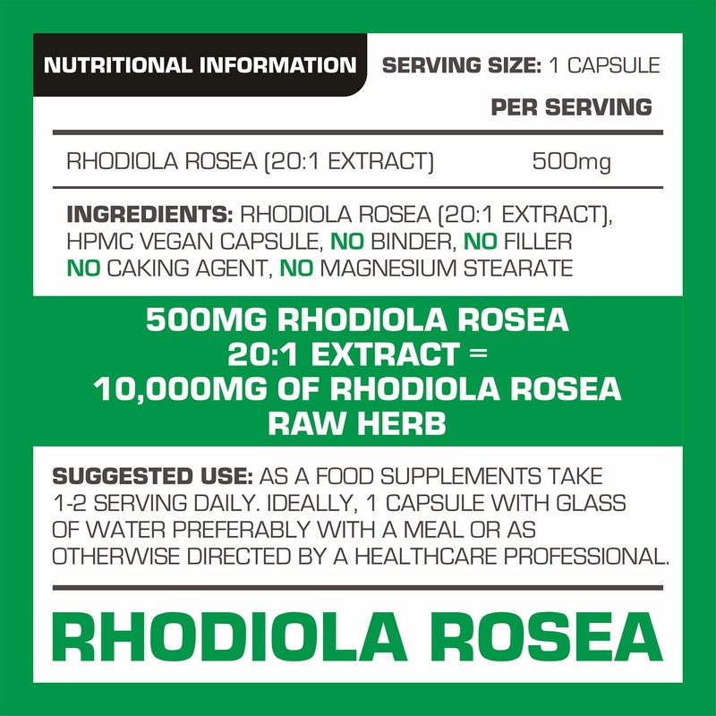 • 🏅 Versatile Use: Rhodiola Rosea is popular among a diverse range of individuals, including students, business executives, and athletes. Its versatility makes it a valuable addition to various lifestyles, whether you're looking to enhance your focus, manage stress, or support physical performance.