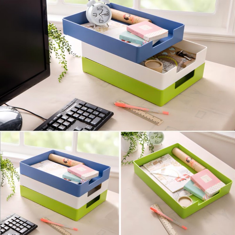 - 【Versatile Organizer Set】The large-capacity storage boxes have ample storage space for paper, forms, notepads, worksheets, books, invoices, artwork, work orders and more. They can be used in drawers or cabinets, or on desks or shelves, suitable for various environments such as offices, hospitals, schools, test fields, etc. Our storage tray set is a perfect gift for anyone who is fully loaded with letters, files, documents, office supplies and doesn't have enough desktop space!