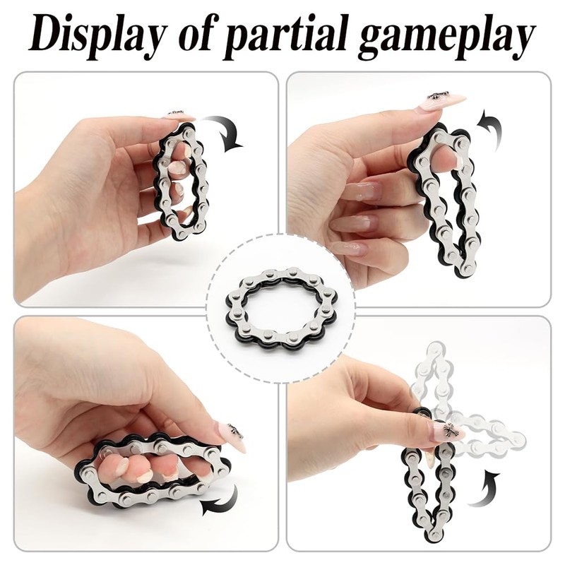 RHQFDM Pack of 2 Stress Relief Toy Stress Relief Chain Toy Infinite Flip Chain Flippy Chain Game Set for Relieving Tension and Stress, for Children with ADHD
