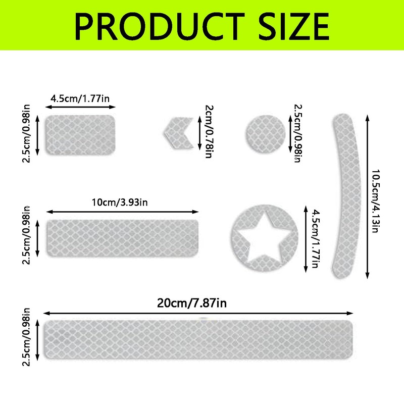 • Premium Material: The reflective stickers are made of high-quality reflective material, which are eye-catching and durable, also are sturdy and provide great durability for long-time reusing.