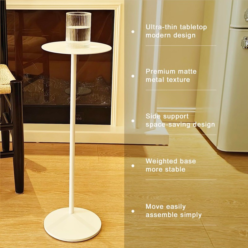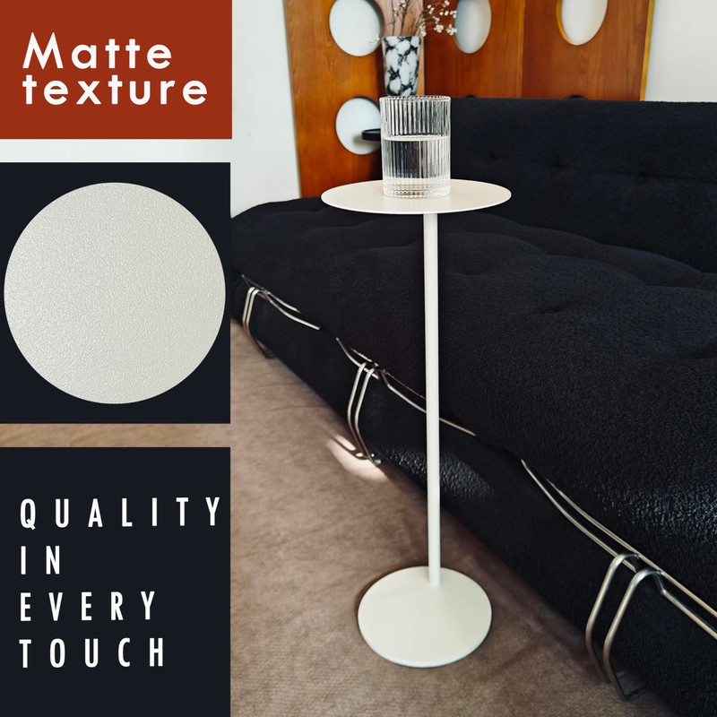 - Premium matte metal texture. Crafted with an all-metal frame and delicate matte finish, this drink table offers a warm touch, scratch-resistant durability, and understated luxury. Its sophisticated texture enhances home decor while blending practicality and aesthetics, ideal for both casual use and elegant settings.