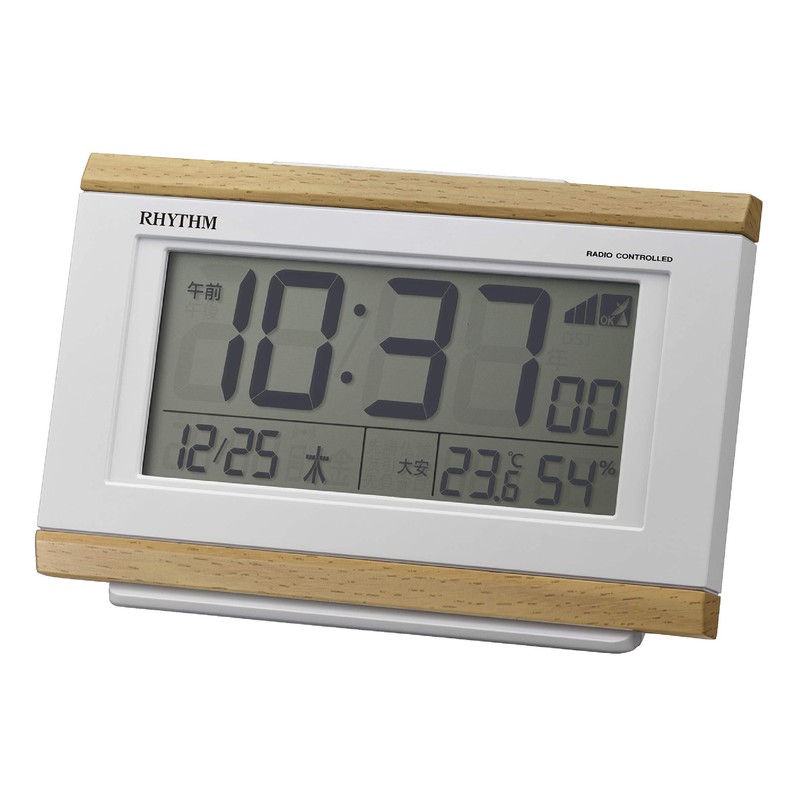 RHYTHM 8RZ161SR07 Alarm Clock, Radio Clock, Electronic Sound Alarm, Temperature, Humidity, Calendar, Rokuyo, Light Brown, 3.5 x 5.3 x 1.7 inches (8.9 x 13.5 x 4.4 cm)