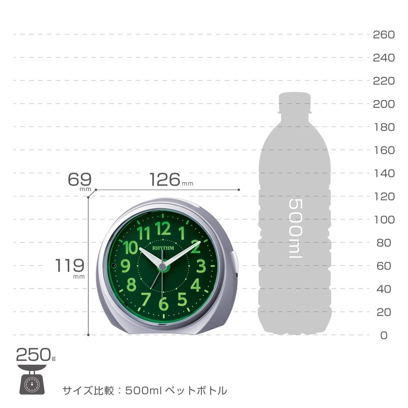 リズム(RHYTHM) 目覚まし時計 アナログ ルークR666 夜見える 暗所 ライト 自動 点灯 連続秒針 集光 文字板 電子音 アラーム 銀色 RHYTHM 8RE666SR19