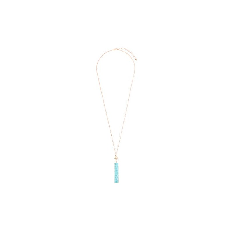 RIAH FASHION Bohemian Natural Stone Geometric Pendant Long Necklace - Simple Rectangle Bar Charm Layering Statement Layer Chain Marble Quartz (Faceted Bar 2 - Turquoise)