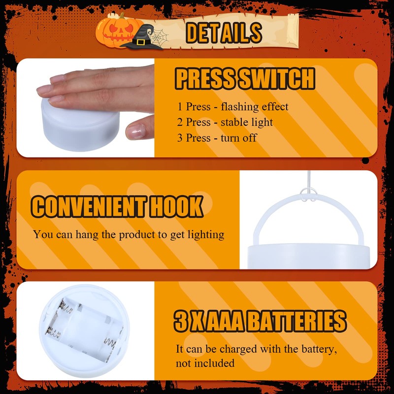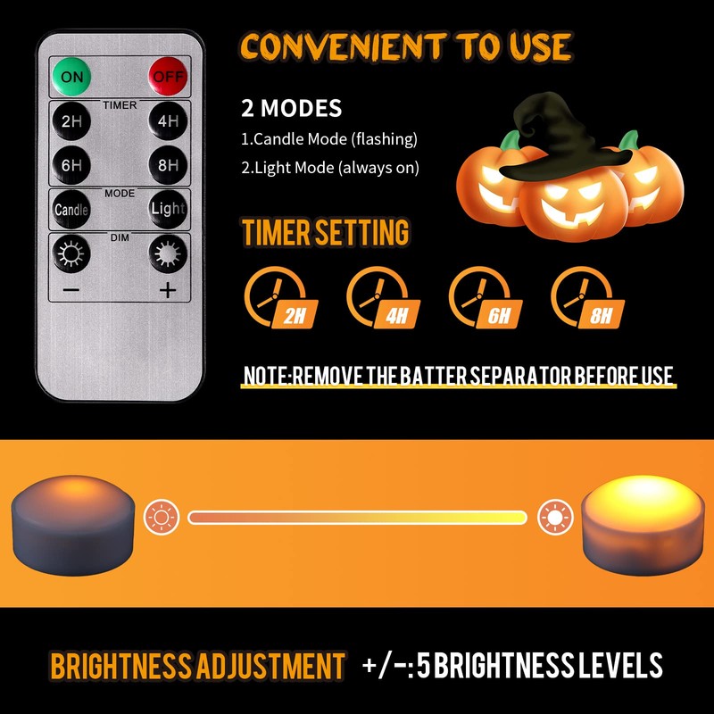 - Halloween pumpkin lights: remote pumpkin lights are your first choice for Halloween decoration, put bright LED lights into real pumpkins or fake pumpkins and light them up to enhance the festive atmosphere; 6 Pumpkin lights and 2 remote controls to meet your Halloween needs