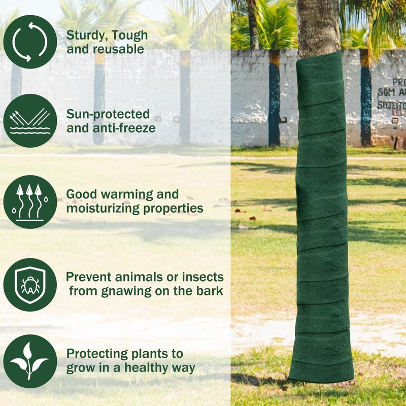 - Premium Material: Our tree wrap outdoor is made of high-quality non-woven fabric which has good warming and moisturizing properties to help plants withstand cold and frost, while providing protection from the sun and burns. The nice thick felt material is sturdy enough to be used for several years without damage