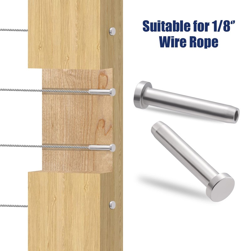 - SIZE: Dimensions-Fits 1/8" Cable Railing Kit. Overall Pole Length = 1-1/2", Head Diameter = 3/8", Recommended Drill Diameter = 1/4". It Provides a "Dead End" for the Whole Cable Railing Project and Strongly Holds the Wire Rope in Place All the Time. A Complete Cable Line Should Include Both a Tensioner and a Fixed End. Recommend to Use with 1/8" Cable Railing Tensioners