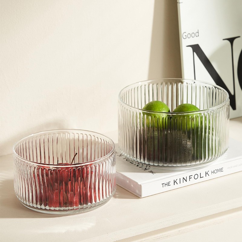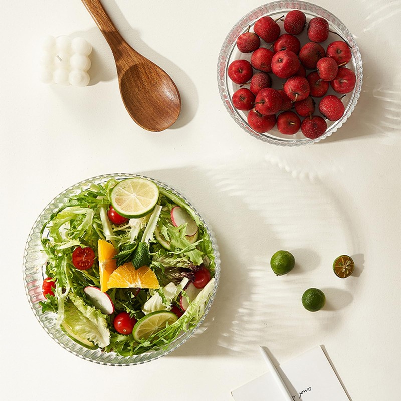 - Elegant Ribbed Glass Design – This 8.74-inch glass salad bowl features a sophisticated vertical ribbed texture, enhancing its aesthetic appeal while providing a secure grip for easy handling.