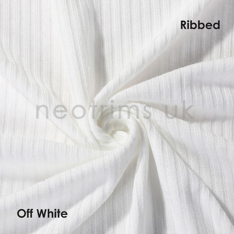 Ribbed Knitted Jersey Stretch Fabric Plain and Ribbed Pattern 25 Colours Tailoring Baby Photography for All Seasons Off White, Sample: Plain + Ribbed