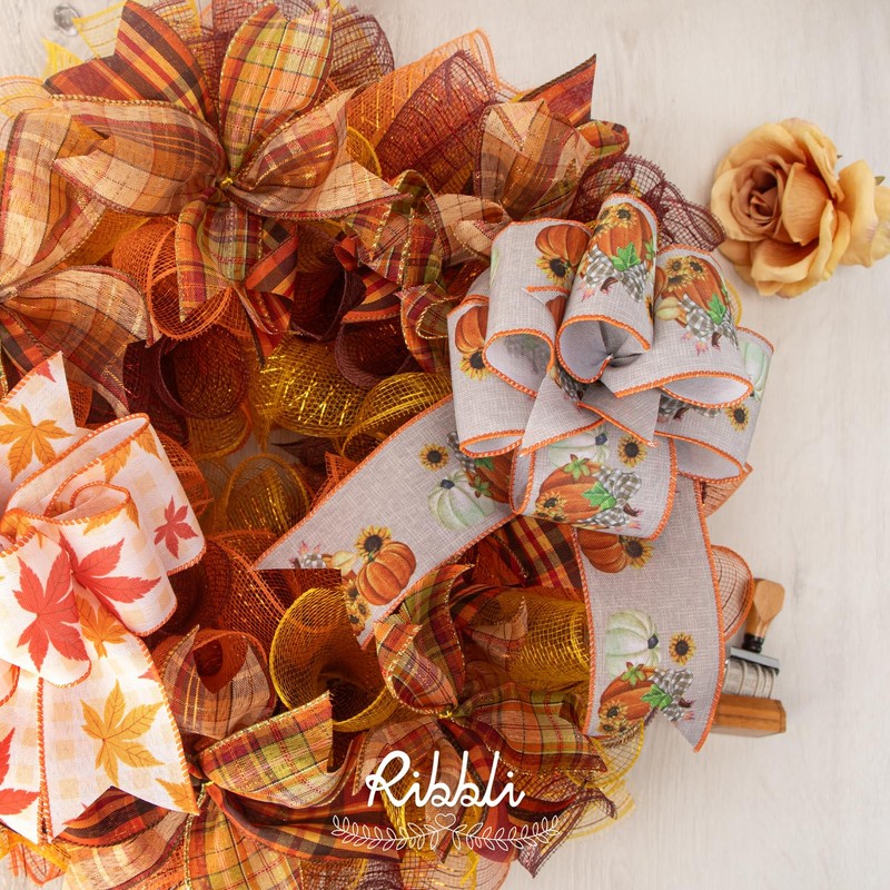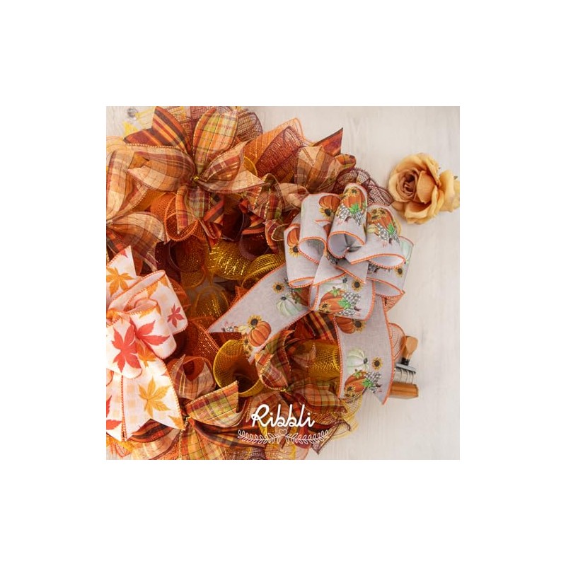 Ribbli 4 Rolls Yellow Gold Mesh Ribbon, 10 inch x 30 feet(10Yard) Each Roll,Fall Ribbon for Wreath Swags Yellow Gold with Gold Foil