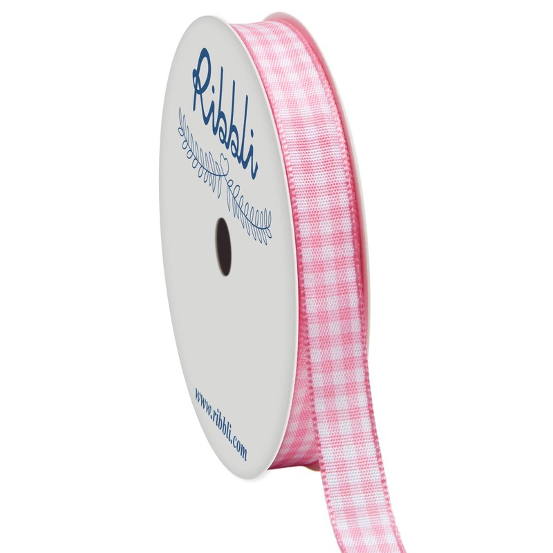 Ribbli Ribbli Light Pink and White Gingham Ribbon,100% Polyester Woven Edge,3/8 Inch x 10 Yard,Plaid Ribbon Use for Baby Shower,Gift Wrapping,Party Decoration