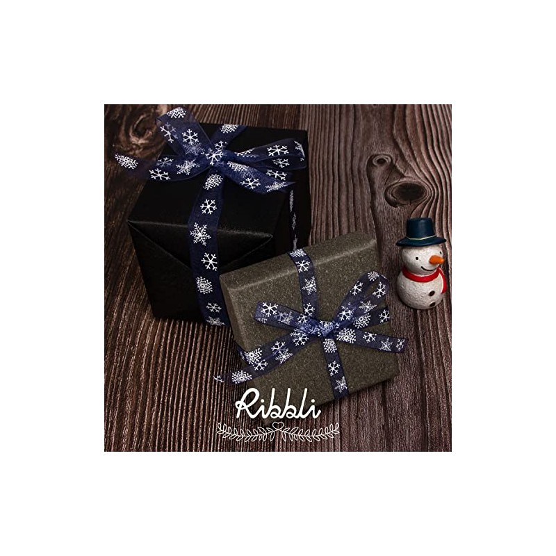 Ribbli Snowflake Navy Sheer Organza Ribbon,3/8 Inches x Continuous 25 Yard Christmas Ribbon for Crafts,Gift Wrapping,Christmas Tree Decoration