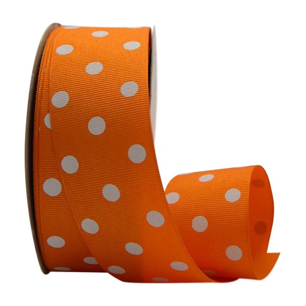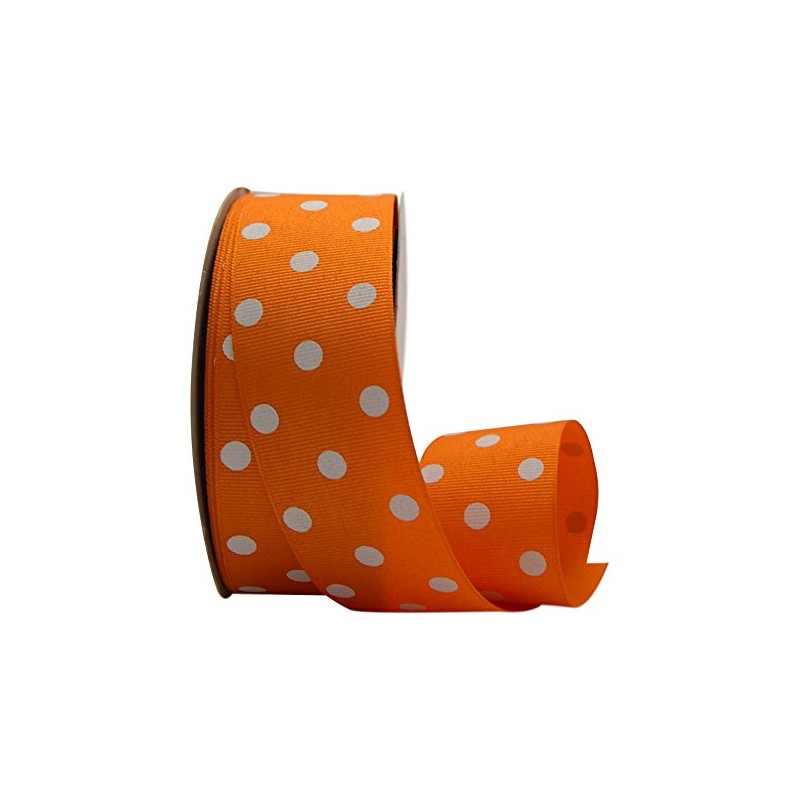 Ribbon Bazaar Grosgrain Polka Dots 1-1/2 inch Orange by The Yard 100% Polyester Ribbon