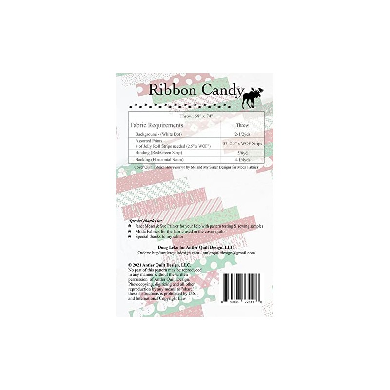 Ribbon Candy Quilt Pattern, Finished Size 68" by 74" (Throw), Jelly Roll 2.5" Strip Friendly, by Doug Leko for Antler Quilt Designs