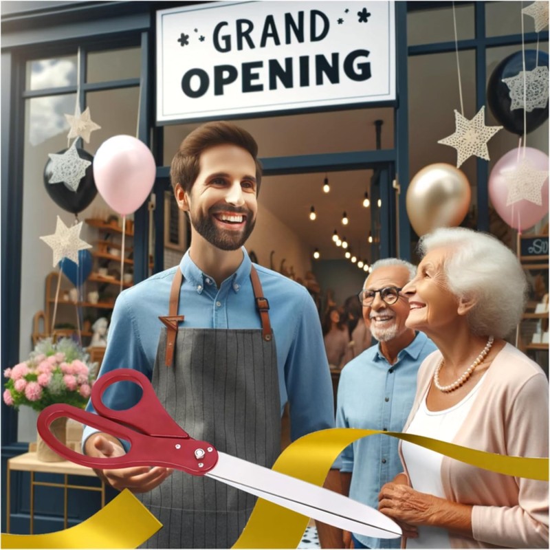- You will get a perfect set of large red scissors 25'' and golden ribbon, grand opening ribbon cutting ceremony kit for ribbon cutting ceremony and golden ribbon for the intended opening. Our ribbon and scissors grand opening is all you need for a bright and unforgettable opening ceremony chambridge grand opening scissors
