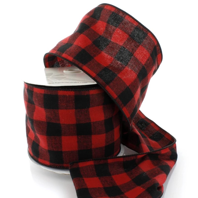 Ribbon Traditions 4.75" Wired Red/Black Flannel Plaid Ribbon - 10 Yards
