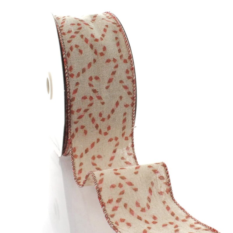Constructed of a natural woven burlap ribbon base with a traditional hot cocoa, gingerbread man, candy canes, and ivy holiday print design. This ribbon would make a beautiful addition to packaging Christmas gifts, floral arrangements, and holiday-themed decor such as adding to garlands, trees, wreaths, etc.