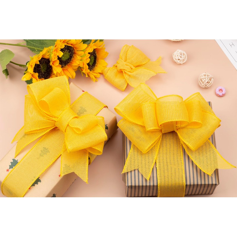 Ribbonitlux Yellow Burlap Wired Ribbon, 1 inch x 20 Yards, Wired Edge Burlap Ribbon for Gift Wrapping, Big Bow, Wreath, and Christmas Tree Decoration