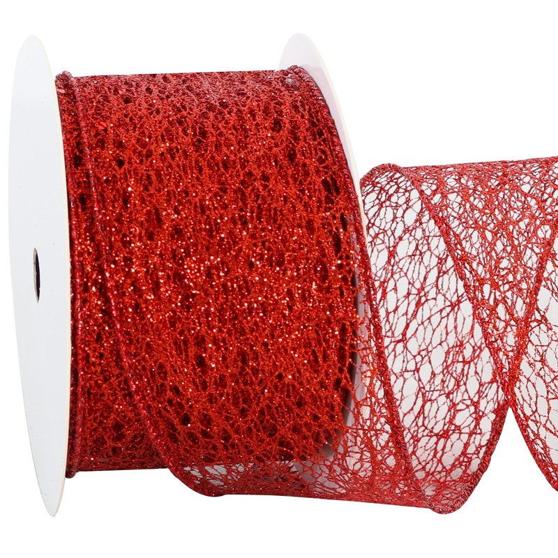 RIBBOOO Red Glitter Mesh Wired Ribbon, 2.5 Inch 10 Yards Sparkling Fabric Ribbon for Wreath Bow Making, Gift Wrapping, Wedding, Christmas Tree Decoration